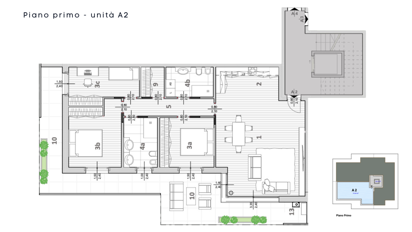 In un’area esclusiva, centrale e immersa dal verde comoda a tutti i servizi di pubblica utilità (posta, scuole, supermercati, farmacia). L’Appartamento è composta da : soggiorno cucina da 46 mq che da su un terrazzone di 45,5 mq , 2 bagni, 3 camere da letto , 1 ripostiglio e posto auto. La costruzione viene realizzata impiegando le tecnologie più innovative, materiali di pregio e finiture di prima e alta qualità .