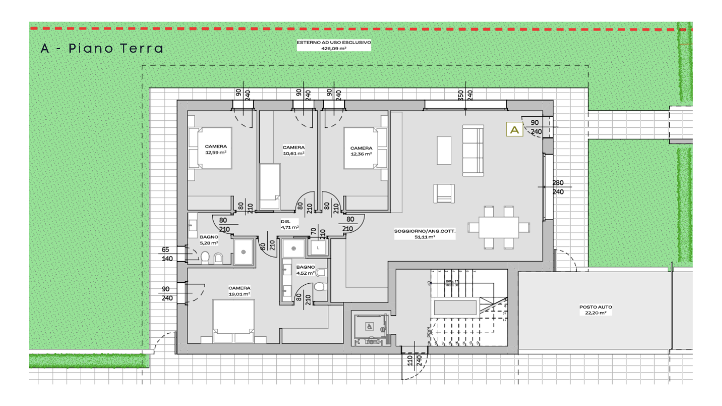 All’esterno, uno splendido giardino privato di 420 mq, ideale per vivere momenti di relax e convivialità all’aperto, con la comodità di un garage privato.